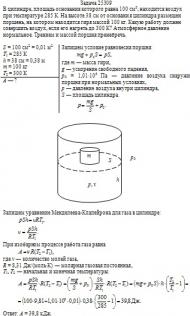 , находится воздух при температуре 285 К. На высоте 38 см от основания цилиндра размещен поршень, на котором находится гиря массой 100 кг. Какую работу должен совершить воздух, если его нагреть до 300 К? Атмосферное давление нормальное. Трением и массой поршня пренебречь.