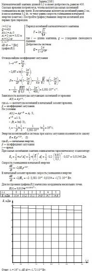 Математический маятник длиной 0,5 м имеет добротность, равную 400. Сколько времени потребуется, чтобы амплитуда малых колебаний уменьшилась на две трети. Если начальная амплитуда колебаний равна 2 см, а масса маятника 0,2 кг, то чему равна скорость уменьшения начальной энергии (в ваттах). Постройте график убывания энергии колебаний для первых трех периодов.