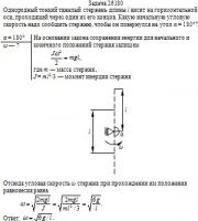 висит на горизонтальной оси, проходящей через один из его концов. Какую начальную угловую скорость надо сообщить стержню, чтобы он повернулся на угол α = 180°?