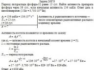 Период полураспада фосфора-32 равен 13 сут. Найти активность препарата фосфора через 39 сут., если начальная активность 136 мкКи. Ответ дать в килобеккерелях (1 Ки = 3,700·10