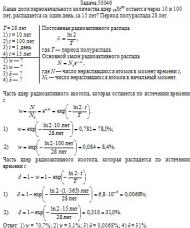 остается через 10 и 100 лет, распадается за один день, за 15 лет? Период полураспада 28 лет.