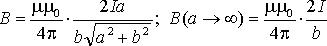 Замкнутая цепь с током силы I включает в себя прямолинейный участок длины 2а. Точка A лежит на расстоянии b от этого участка на перпендикуляре, проходящем через его середину. Найти ту часть магнитной индукции B в точке A, которая создается данным участком. Исследовать случай а→∞.
