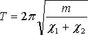 Определить период малых продольных колебаний тела массы m в системе (см. рис.), если жесткости пружинок равны χ