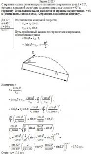С вершины холма, склон которого составляет с горизонтом угол β = 32°, брошен с начальной скоростью v