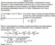 Два бесконечных прямолинейных проводника с одинаковыми токами, текущими в одном направлении, находятся друг от друга на расстоянии b. Чтобы их раздвинуть до расстояния 9b, на каждый сантиметр длины проводника затрачивается работа 4,39 нДж. Определить силу тока в проводниках.