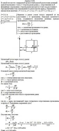 В одной плоскости с квадратной проволочной рамкой расположен длинный прямой проводник с током I. Сторона рамки равна а, сопротивление ее R. Ближайшая к проводнику сторона рамки находится от него на расстоянии b. При выключении тока в проводнике по рамке протек заряд q. Определите неизвестную величину. I = 35,0 A; a = 1,4 см; b = 1 см; R = 0,13 Ом; q — ?