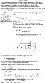 Кл/м. Найти напряжённость электрического поля на прямой, соединяющей центр сферической поверхности и нить в точках, находящихся на расстоянии 3 см и 10 см от центра шара.