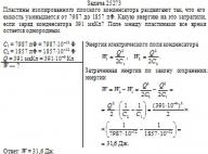 Пластины изолированного плоского конденсатора раздвигают так, что его емкость уменьшается от 7987 до 1857 пФ. Какую энергию на это затратили, если заряд конденсатора 391 мкКл? Поле между пластинами все время остается однородным.