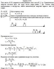 Тело весом 49 Н ударяется в неподвижное тело массой 2,5 кг. Кинетическая энергия системы двух тел сразу после удара равна 5 Дж. Считая удар центральным и неупругим, найти кинетическую энергию первого тела до удара.
