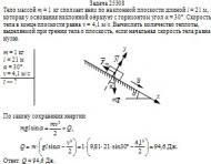 = 21 м, которая у основания наклонной плоскости образует с горизонтом угол α = 30°. Скорость тела в конце плоскости равна v = 4,1 м/с. Вычислить количество теплоты, выделяемой при трении тела о плоскость, если начальная скорость тела равна нулю.