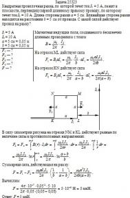 = 10 А. Длина стороны рамки a = 5 см. Ближайшая сторона рамки находится на расстоянии b = 5 см от провода. С какой силой действует провод на рамку?