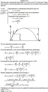 Мяч брошен с начальной скоростью 30 м/с под углом 60° к горизонту. Через какое время от начала движения мяч поднимется на половину максимальной высоты.