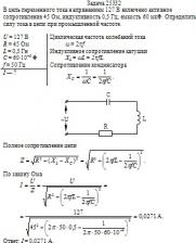 В цепь переменного тока напряжением 127 В включено активное сопротивление 45 Ом, индуктивность 0,5 Гц, емкость 60 мкФ. Определить силу тока в цепи при промышленной частоте.
