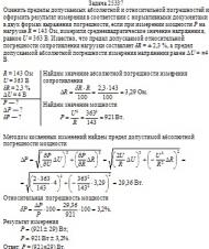 Оценить пределы допускаемых абсолютной и относительной погрешностей и оформить результат измерения в соответствии с нормативными документами в двух формах выражения погрешности, если при измерении мощности Р на нагрузке R = 143 Ом, измерили среднеквадратическое значение напряжения, равное U = 363 В. Известно, что предел допускаемой относительной погрешности сопротивления нагрузки составляет δR = ± 2,3 %, а предел допускаемой абсолютной погрешности измерения напряжения равен ΔU = ±4 В.