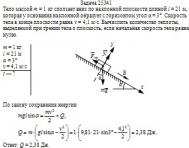 = 21 м, которая у основания наклонной образует с горизонтом угол α = 3°. Скорость тела в конце плоскости равна v = 4,1 м/с. Вычислить количество теплоты, выделяемой при трении тела о плоскость, если начальная скорость тела равна нулю.