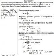 Давление монохроматического света (λ = 600 нм) на черную поверхность, расположенную перпендикулярно падающим лучам, равно 0,1 мкПа. Определить число фотонов, падающих за 1 мин на поверхность 5 см