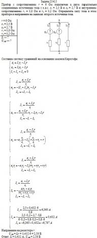 = 0,2 Ом. Определить силу тока в этом приборе и напряжение на зажимах второго источника тока.