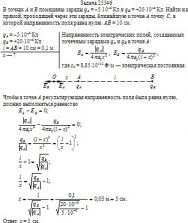 Кл. Найти на прямой, проходящей через эти заряды, ближайшую к точке А точку С, в которой напряженность поля равна нулю. АВ = 10 см.