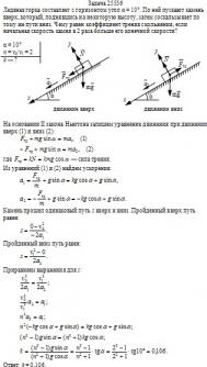 Ледяная горка составляет с горизонтом угол α = 10°. По ней пускают камень вверх, который, поднявшись на некоторую высоту, затем соскальзывает по тому же пути вниз. Чему равен коэффициент трения скольжения, если начальная скорость камня в 2 раза больше его конечной скорости?