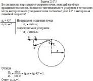 Во сколько раз нормальное ускорение точки, лежащей на ободе вращающегося колеса, больше её тангенциального ускорения в тот момент, когда вектор полного ускорения точки составляет угол 45° с вектором её линейной скорости?