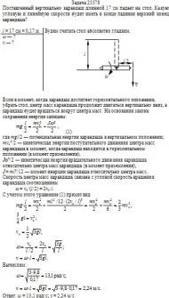 Поставленный вертикально карандаш длинной 17 см падает на стол. Какую угловую и линейную скорости будет иметь в конце падения верхний конец карандаша?