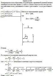 Электрическое поле образовано положительно заряженной длинной нитью с линейной плотностью заряда 0,2 мкКл/м. Какую скорость получит протон под действием поля, удалившись от нити с расстояния 1 см до расстояния 4 см?
