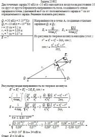 Два точечных заряда 30 нКл и –10 нКл находятся в воздухе на расстоянии 10 см друг от друга Определить напряженность поля, создаваемого этими зарядами в точке, удаленной на 9 см от положительного заряда и 7 см от отрицательного заряда. Решение пояснить рисунком.
