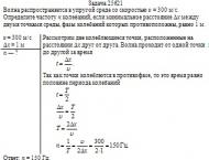 Волна распространяется в упругой среде со скоростью υ = 300 м/с. Определите частоту n колебаний, если минимальное расстояние Δx между двумя точками среды, фазы колебаний которых противоположны, равно 1 м.