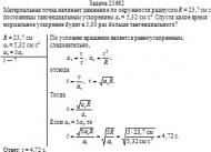 Материальная точка начинает движение по окружности радиусом R = 23,7 см с постоянным тангенциальным ускорением a