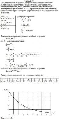 Груз, подвешенный на пружине, совершает гармонические колебания с частотой 1,5 Гц и амплитудой 5 см. Пространство, окружающее груз, заполнили жидкостью, после чего колебания стали затухающими и их амплитуда за 8 с уменьшилась на 40%. Через сколько колебаний амплитуда уменьшится в два раза? Постройте график зависимости амплитуды колебаний от времени.
