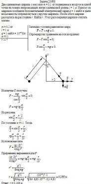 = 1 м. Одному из шариков сообщили положительный электрический заряд q = 1 мкКл и дали возможность соприкоснуться с другим шариком. После этого шарики разошлись на расстояние r. Найти r. Угол расхождения шариков считать малым.