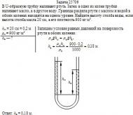 В U-образную трубку наливают ртуть. Затем в одно из колен трубки наливают масло, а в другое воду. Границы раздела ртути с маслом и водой в обоих коленах находятся на одном уровне. Найдите высоту столба воды, если высота столба масла 20 см, а его плотность 900 кг/м