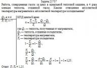 Работа, совершенная газом за цикл в идеальной тепловой машине, в 4 раза меньше теплоты, отданной газом. Каково отношение абсолютной температуры нагревателя к абсолютной температуре холодильника?