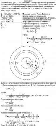 Точечный заряд Q = 0,15 мкКл находится в центре сферической проводящей оболочки, внешний и внутренний радиусы которой соответственно равны R = 25 см и r = 20 см. Определить напряженность поля в точках, удаленных от заряда соответственно на r