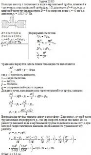 На какую высоту h поднимается вода в вертикальной трубке, впаянной в узкую часть горизонтальной трубы (рис. 10) диаметром d = 4 см, если в широкой части трубы диаметром D = 6 см скорость воды v