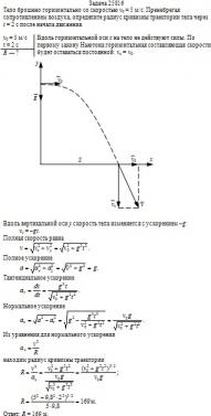 = 5 м/с. Пренебрегая сопротивлением воздуха, определите радиус кривизны траектории тела через t = 2 c после начала движения.