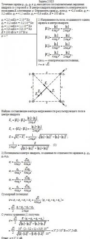 находятся в последовательных вершинах квадрата со стороной a. В центре квадрата напряженность электрического поля равна E, а потенциал φ. Определить заряд q