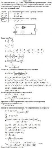 Два источника тока с ЭДС 24 В и с внутренними сопротивлениями 2 Ом и 3 Ом соединены параллельно. При каком сопротивлении внешней нагрузки полезная мощность равна 64 Вт? Какую наибольшую мощность можно получить во внешней цепи?