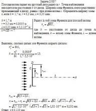 Плоская волна падает на круглый диск радиуса r. Точка наблюдения находится на расстоянии b от диска. Ширина зоны Френеля, непосредственно примыкающей к диску, равна x при длине волны λ. Определить ширину зоны x, если b = 1,7 м; r = 3,5 мм; λ = 0,55 мкм.