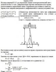 На щель шириной 0,05 мм нормально падает монохроматический свет с длиной волны 0,4 мкм. Дифракционная картина наблюдается на экране, расположенном параллельно щели. Определить расстояние от щели до экрана, если ширина центрального дифракционного максимума равна 8 мм.