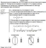 Два николя расположены так, что угол между их плоскостями пропускания равен 30°. Потери на поглощение составляют 10 % в каждом николе. Определить, во сколько раз уменьшится интенсивность света при прохождении через оба николя?