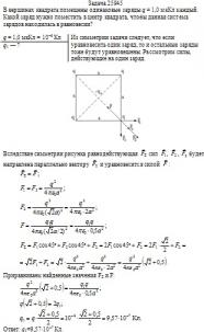 В вершинах квадрата помещены одинаковые заряды q = 1,0 мкКл каждый. Какой заряд нужно поместить в центр квадрата, чтобы данная система зарядов находилась в равновесии?