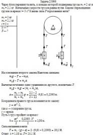 = 2,1 кг. Начальные скорости грузов равны нулю. Каково перемещение грузов за время t = 3 c? Какова сила T торможения нити?