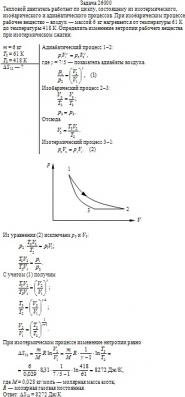 Тепловой двигатель работает по циклу, состоящему из изотермического, изобарического и адиабатического процессов. При изобарическом процессе рабочее вещество – воздух — массой 6 кг нагревается от температуры 61 К до температуры 418 К. Определить изменение энтропии рабочего вещества при изотермическом сжатии.