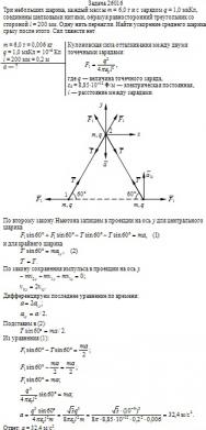 = 200 мм. Одну нить пережгли. Найти ускорение среднего шарика сразу после этого. Сил тяжести нет.