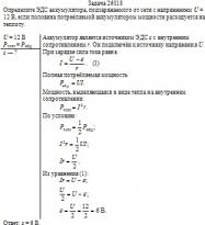 Определите ЭДС аккумулятора, подзаряжаемого от сети с напряжением U = 12 В, если половина потребляемой аккумулятором мощности расходуется на теплоту.
