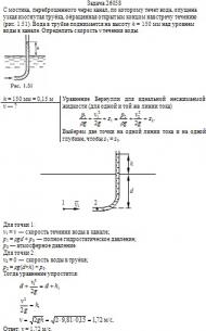 С мостика, переброшенного через канал, по которому течет вода, опущена узкая изогнутая трубка, обращенная открытым концом навстречу течению (рис. 1.51). Вода в трубке поднимается на высоту h = 150 мм над уровнем воды в канале. Определить скорость v течения воды.
