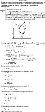Плоская световая волна длины λ в вакууме падает по нормали на прозрачную пластинку с показателем преломления n. При каких толщинах b пластинки отраженная волна будет иметь а) максимальную, б) минимальную интенсивность?