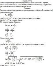 Стационарным искусственным спутником Земли называется спутник, находящийся постоянно над одной и той же точкой экватора. Определить расстояние такого спутник до центра Земли.