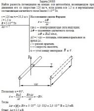 Найти разность потенциалов на концах оси автомобиля, возникающую при движении его со скоростью 120 км/ч, если длина оси 1,5 м и вертикальная составляющая магнитного поля Земли 5·10